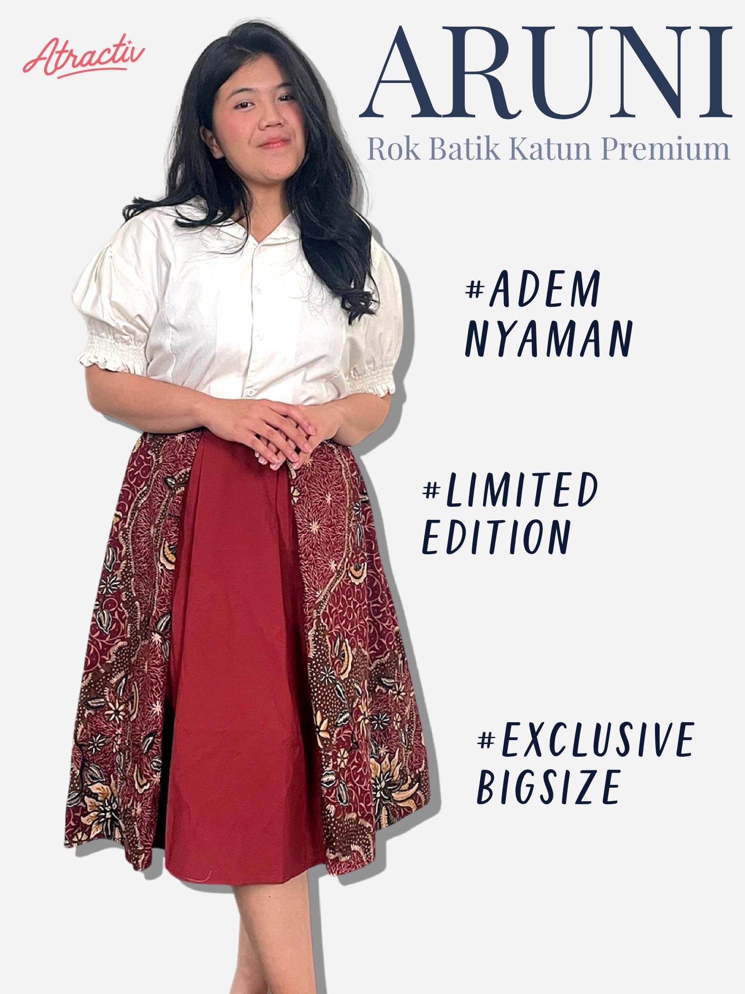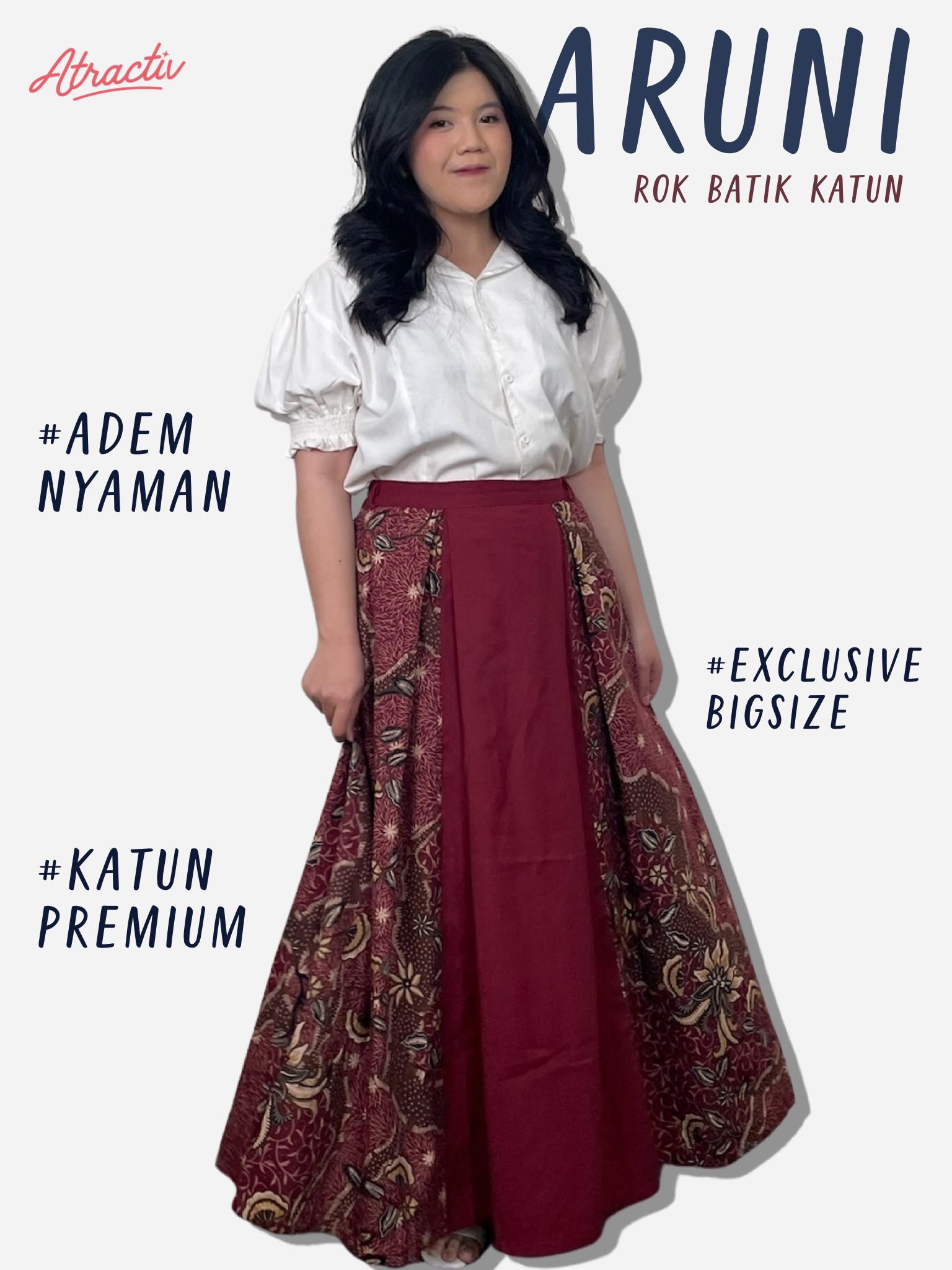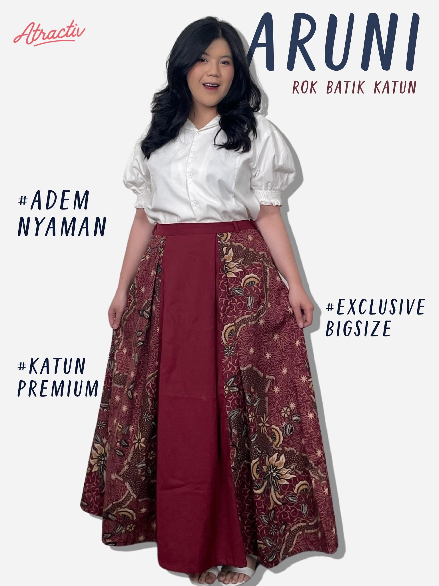 Rok Batik "Aruni" kami desain spesial untuk perempuan big size yang aktif dan banyak kegiatan. Dengan panjang rok yang cukup modest serta look yang elegan, rok ini sangat cocok untuk dipakai ke kantor maupun acara formal.