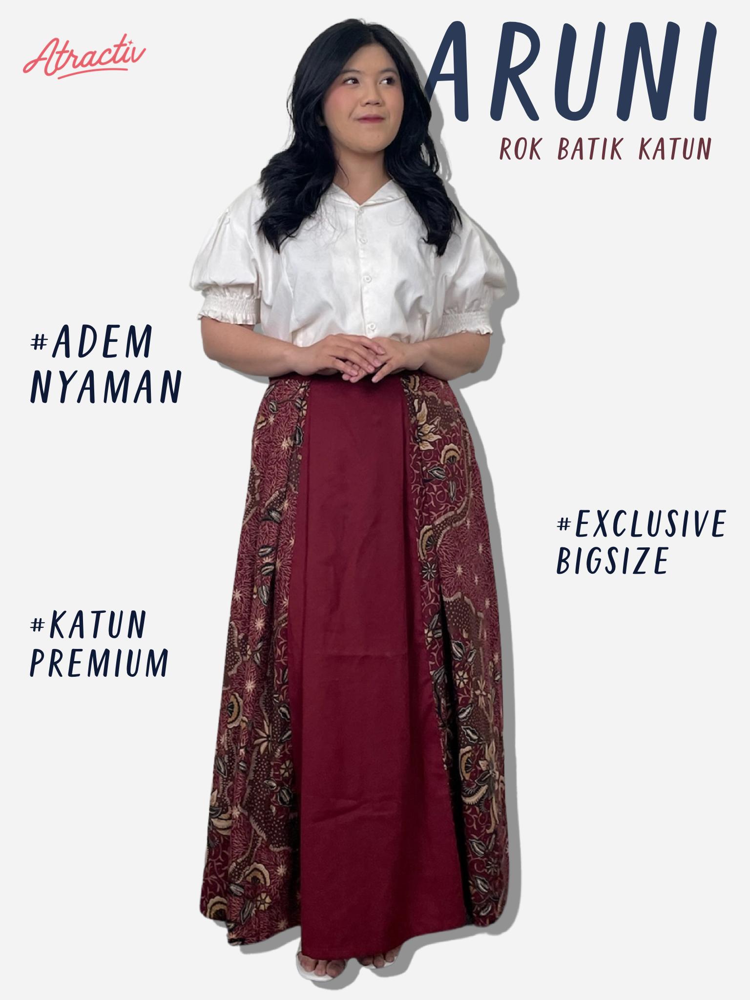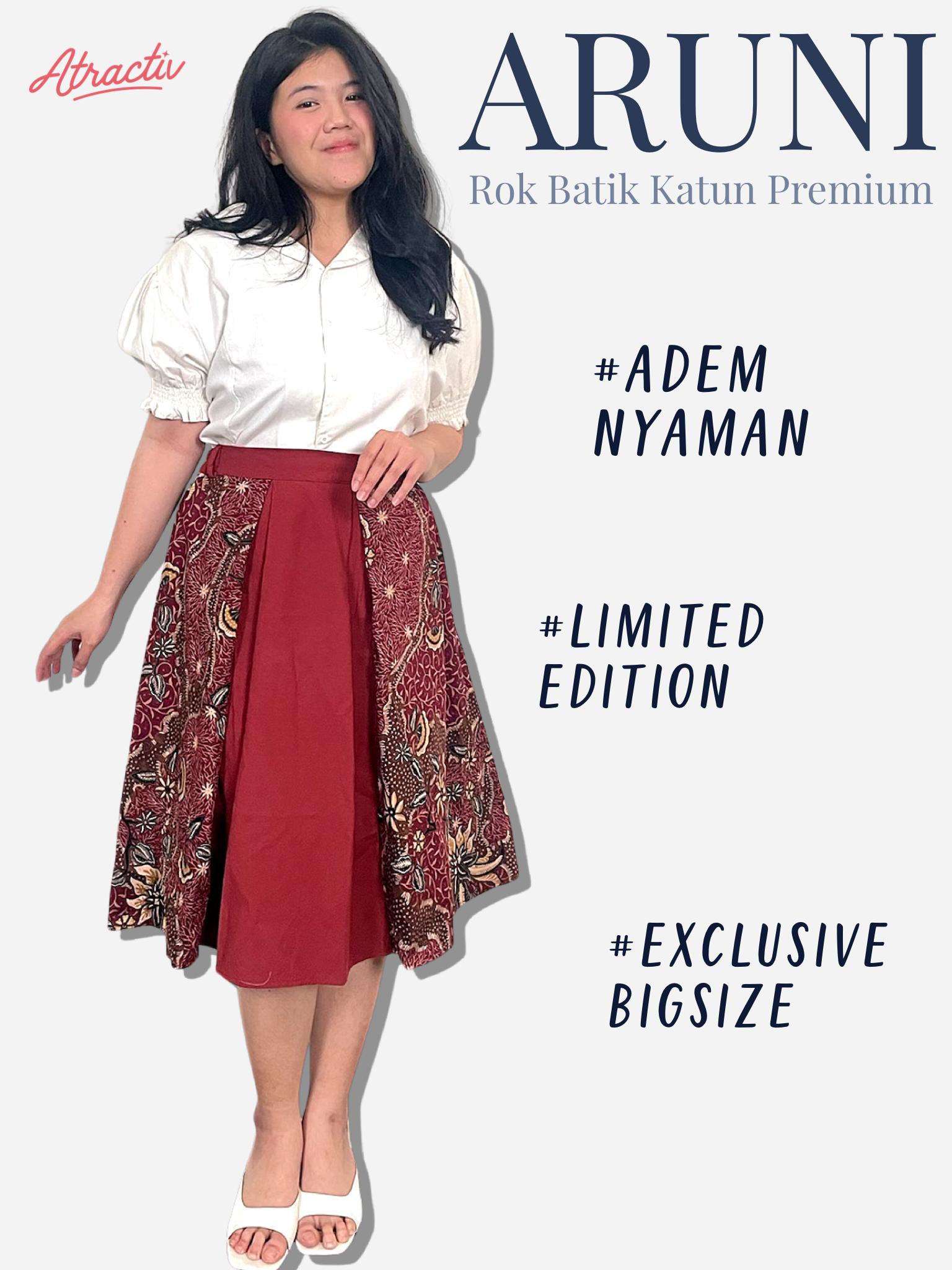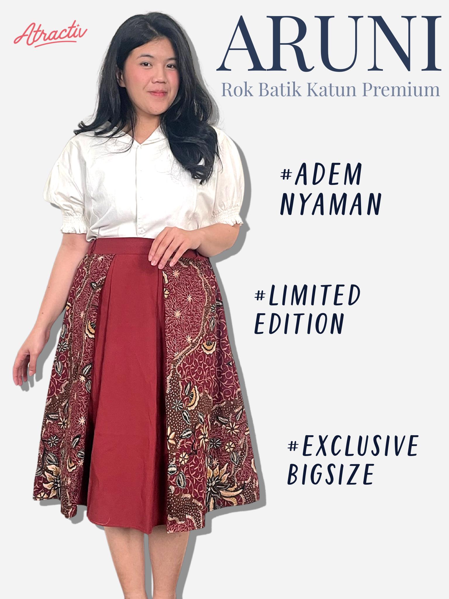 Rok Batik "Aruni" kami desain spesial untuk perempuan big size yang aktif dan banyak kegiatan. Dengan panjang rok yang cukup modest serta look yang elegan, rok ini sangat cocok untuk dipakai ke kantor maupun acara formal.
